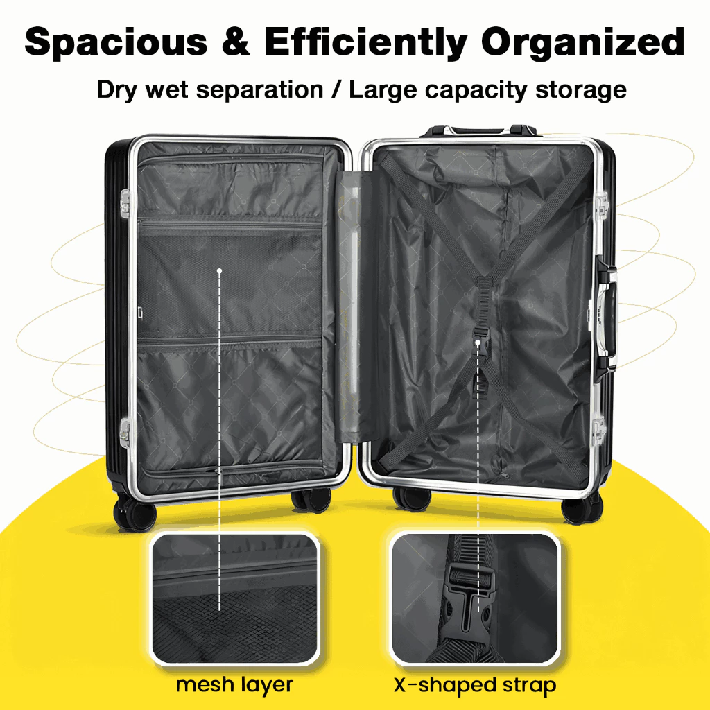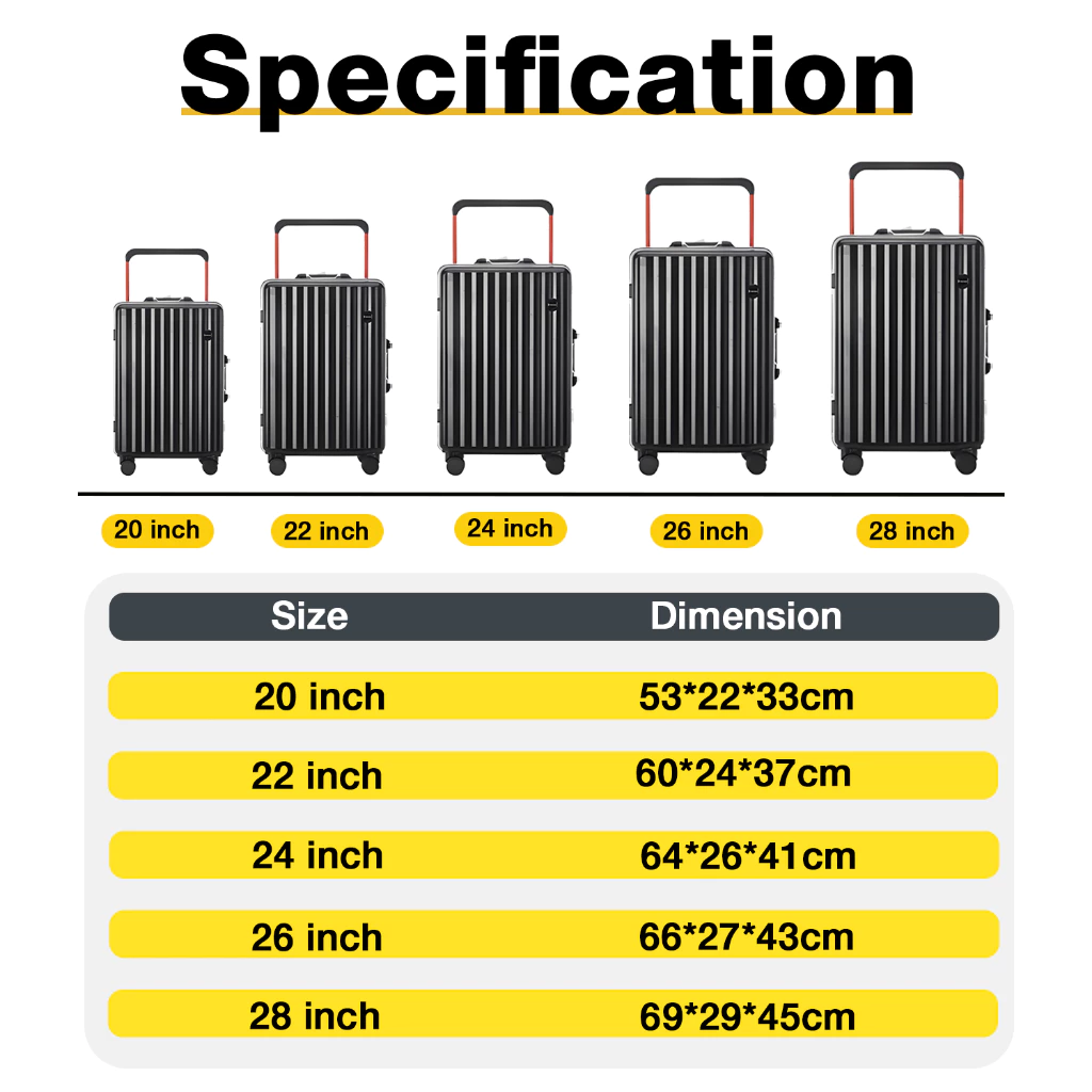 20/24/28 inch Aluminum Frame Luggage Bag Travel Wide Handle Luggage with TSA Lock Carry on Suitcase Koper Bagasi 行李箱