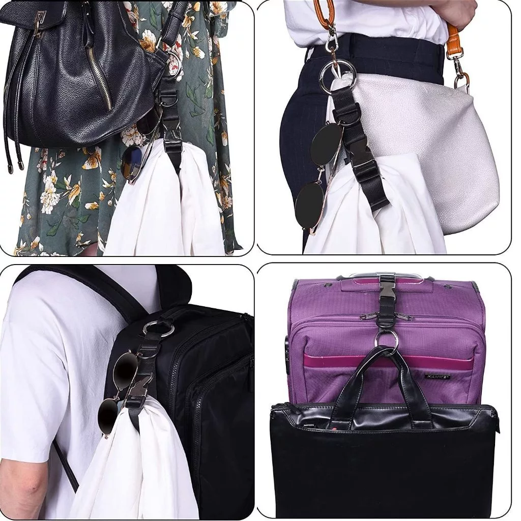 Hands-Free Travel Luggage Hook Suitcase Hanger Buckle Adjustable Suitcase Clip Hook Strap Heavy Duty Carry-on Bag Hook