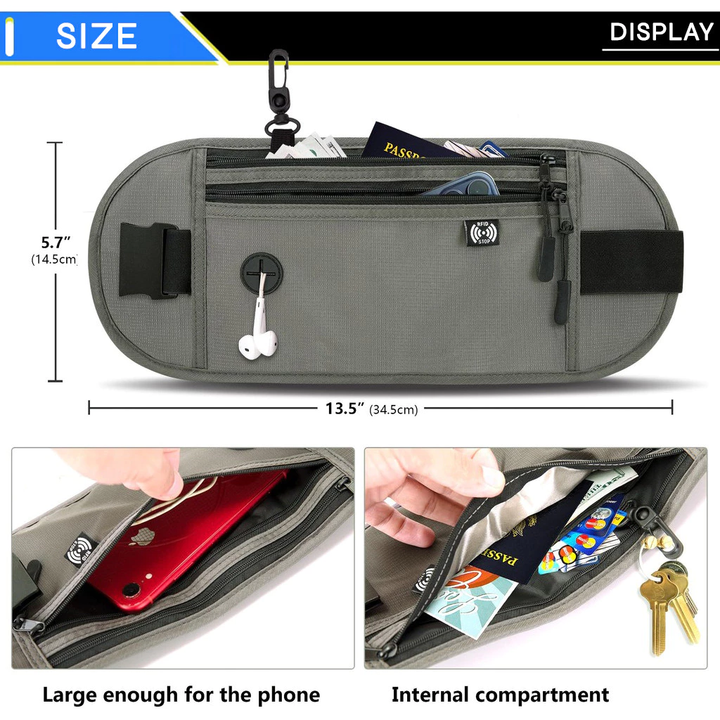 Pocket Safe Waist Bag Waterproof Slim RFID Secure Travel Money Passport Pouch Anti-theft Fanny Pack Travel Wallet 腰包